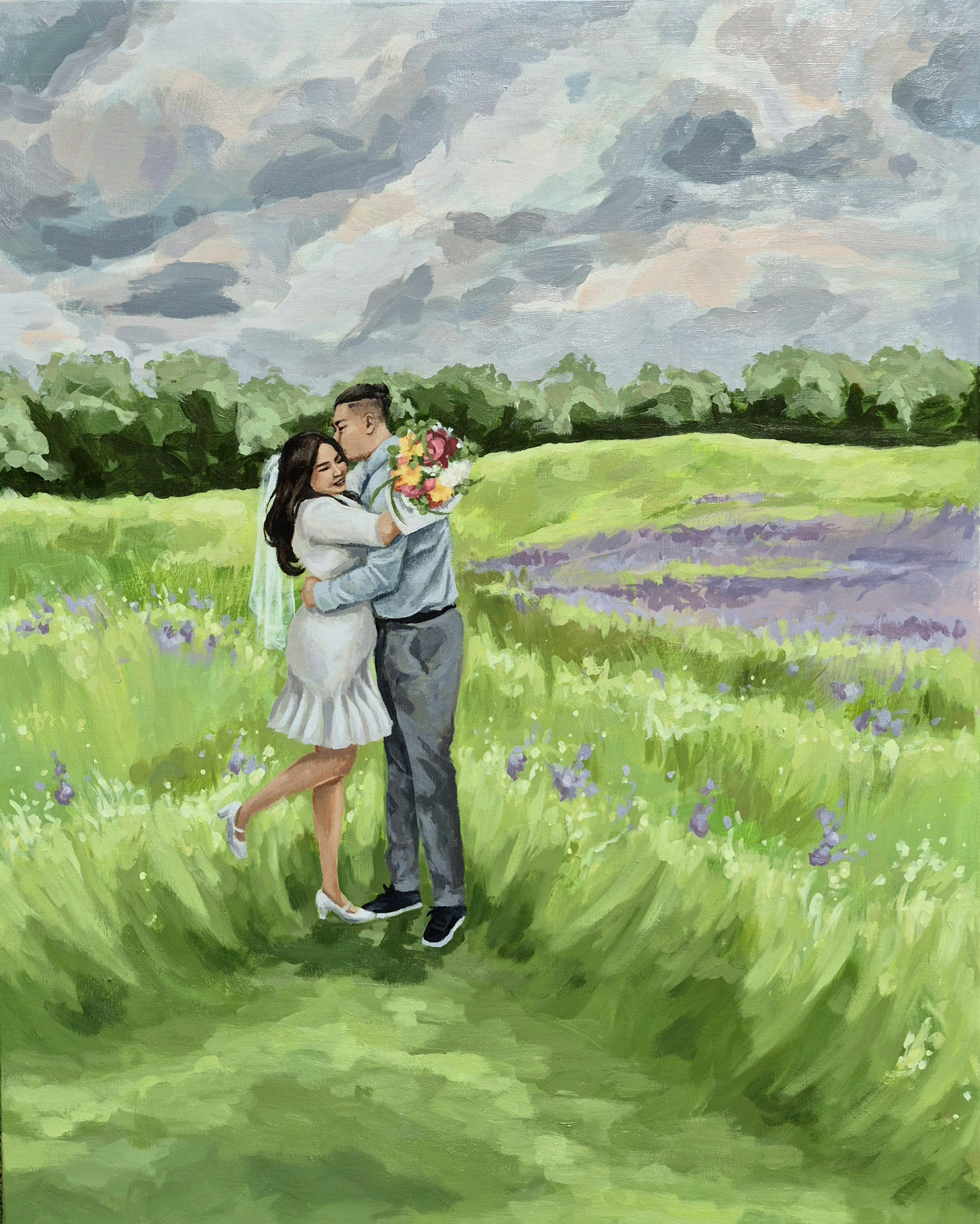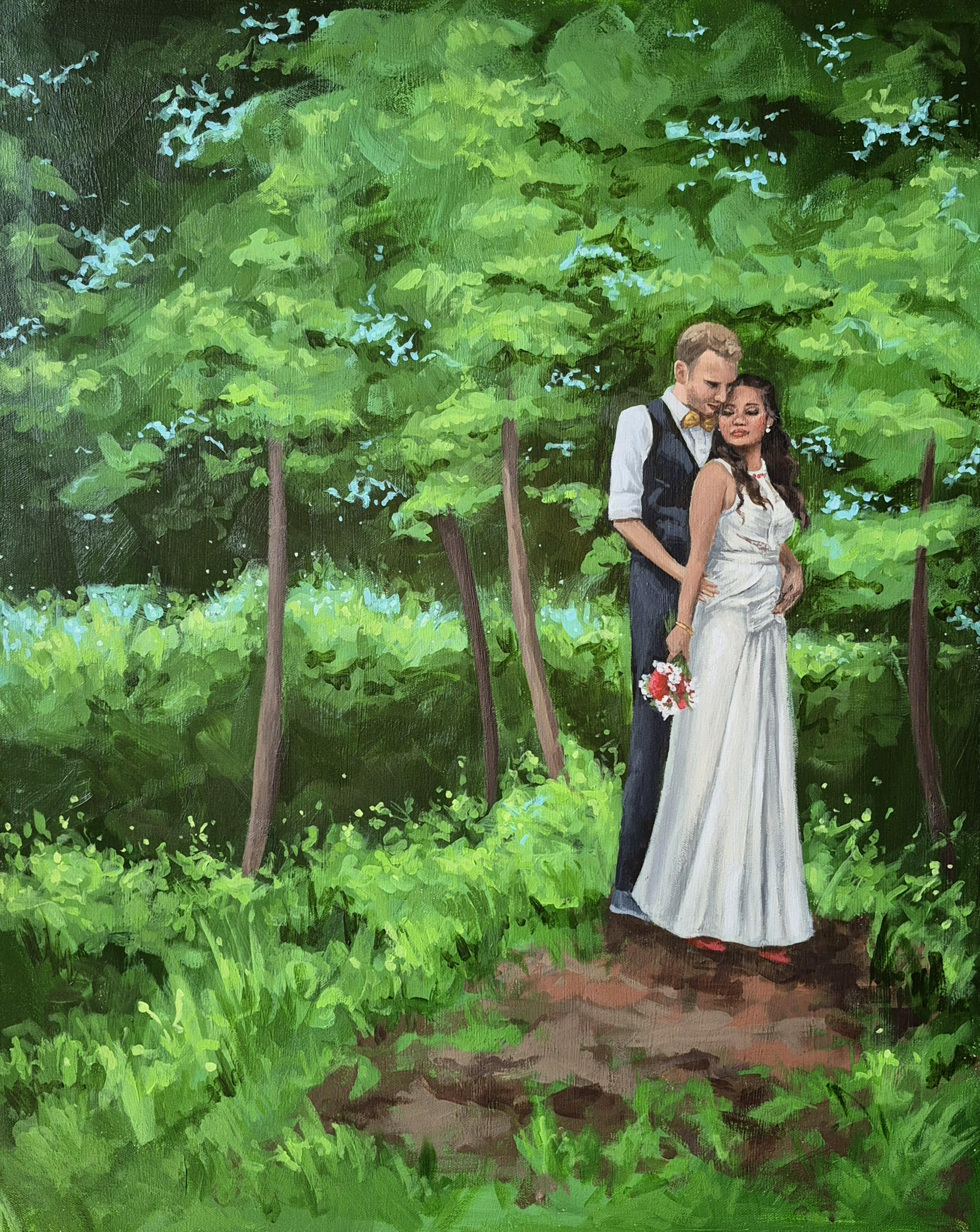 Includes 5 hours of live painting at the event ($400 hourly rate) and up to 50 guest portraits (or 25 couples) painted at the wedding.