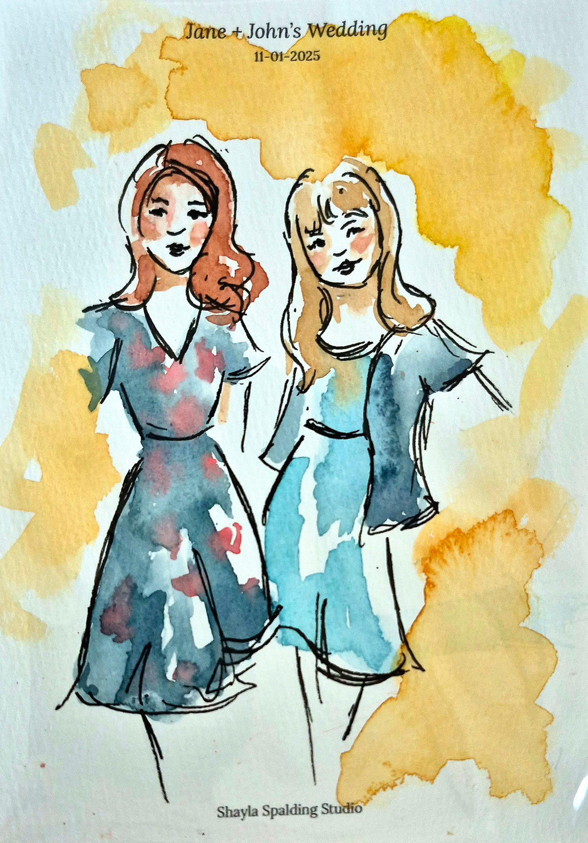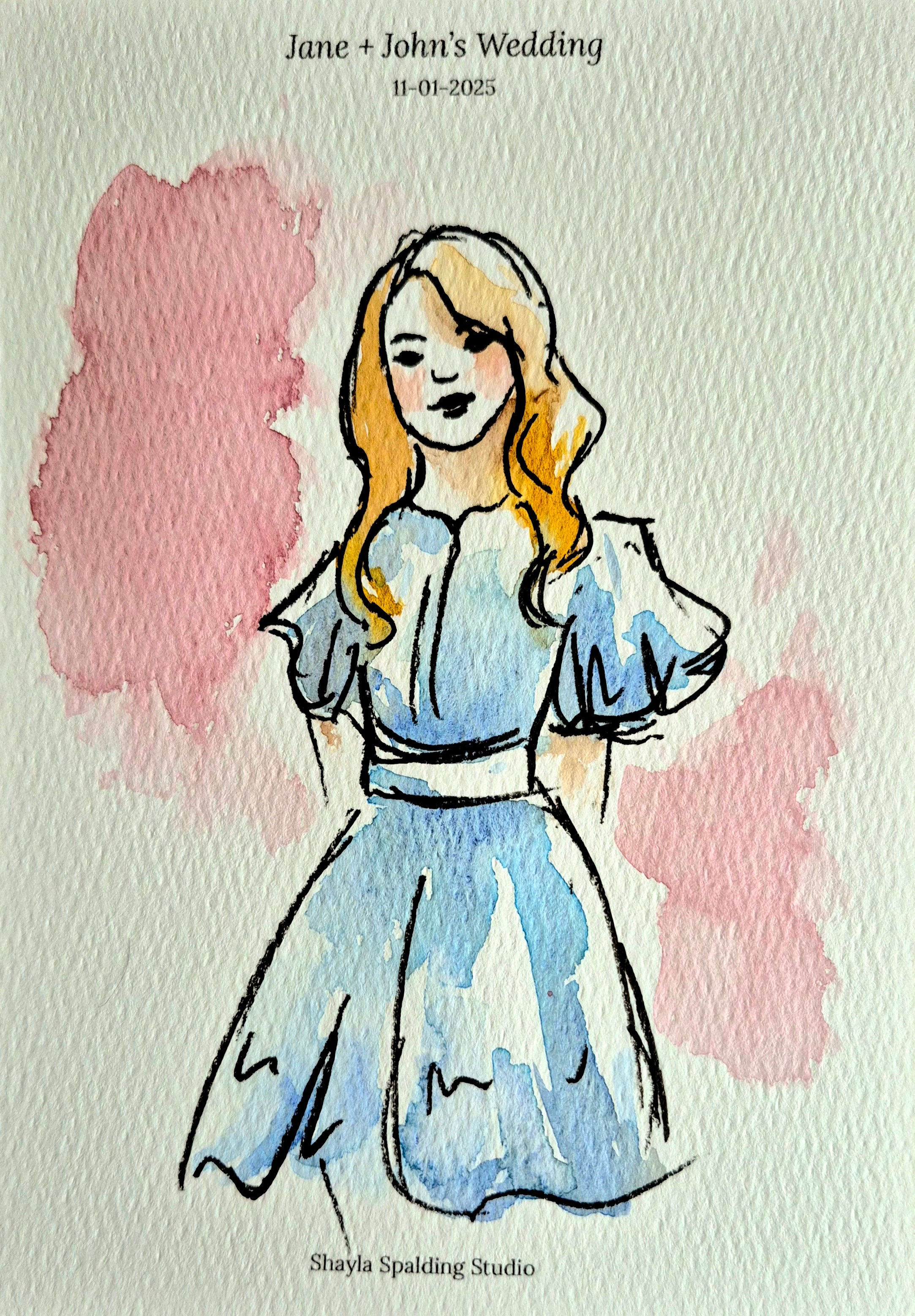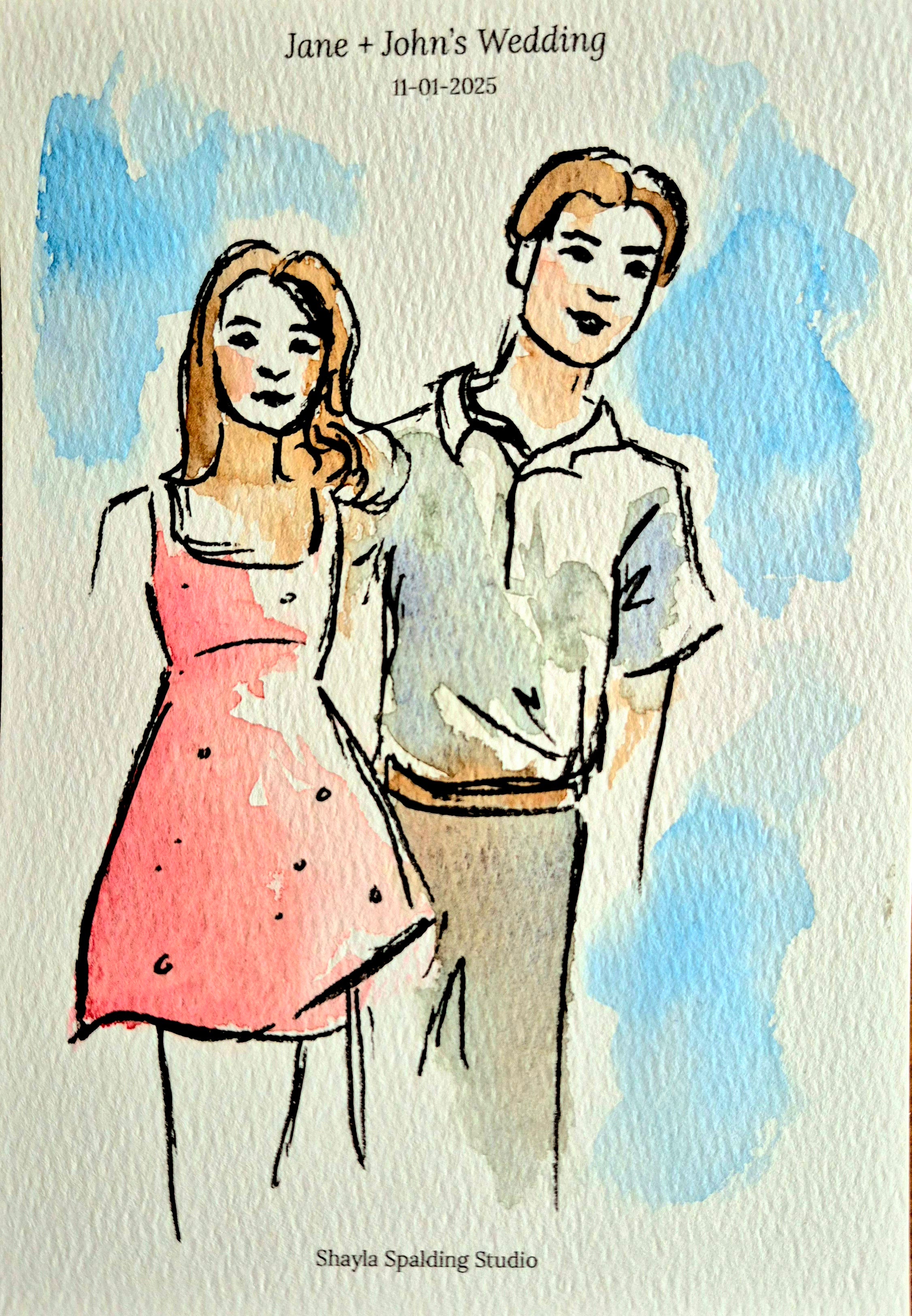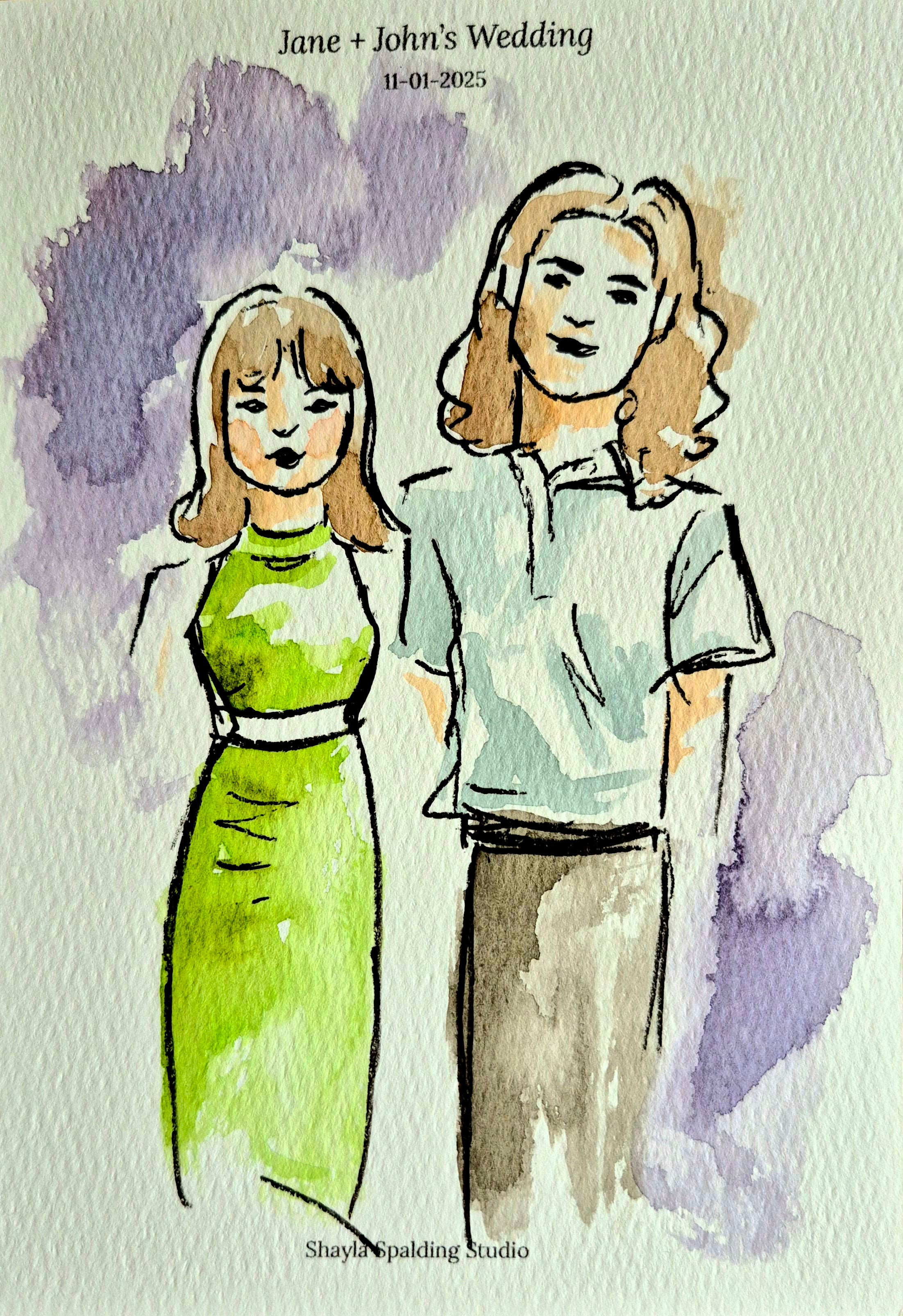 Includes up to 5 hours of live painting at the event and 40 to 50 guest portraits (or 20 to 25 couples) painted at the wedding.